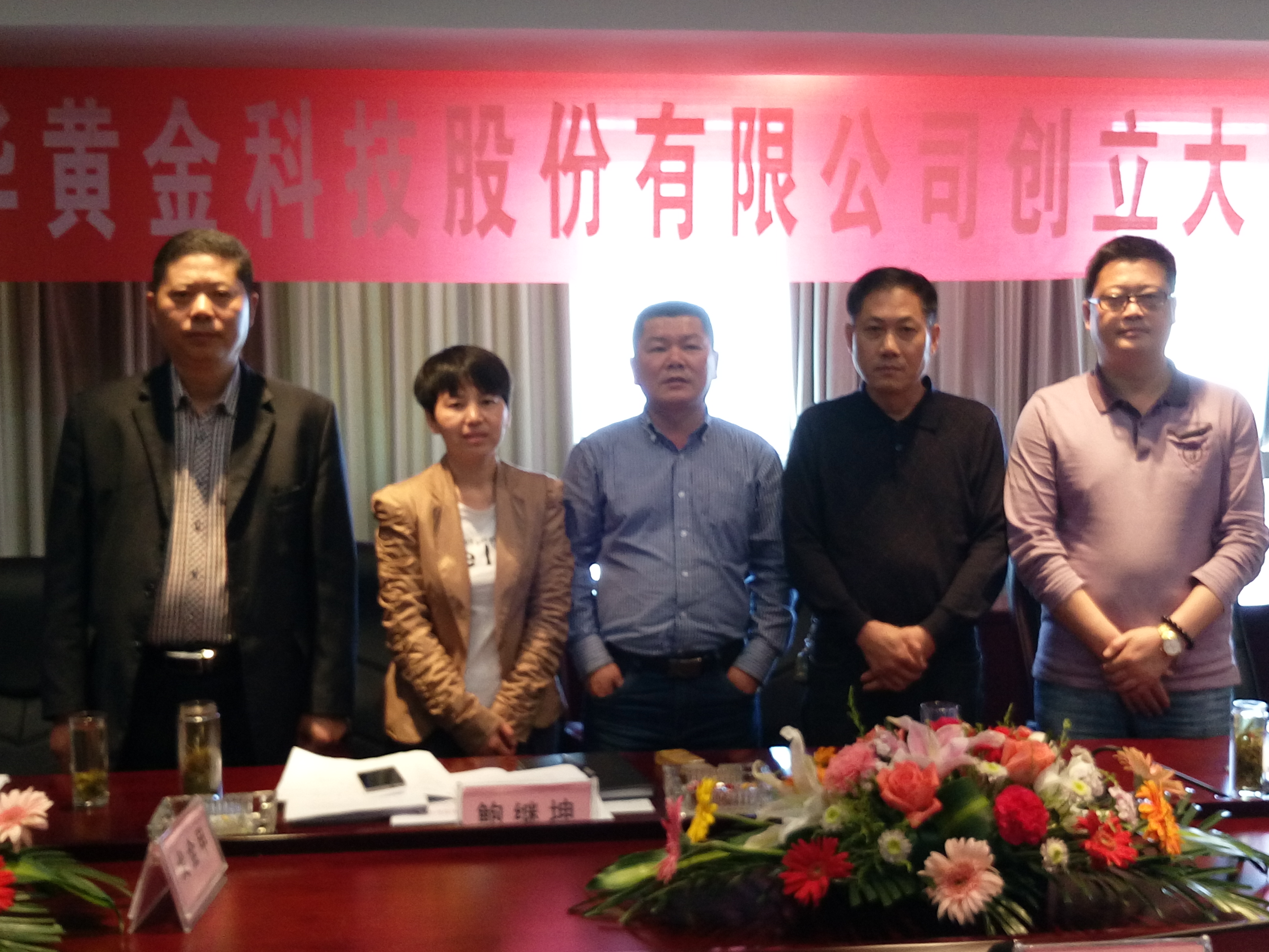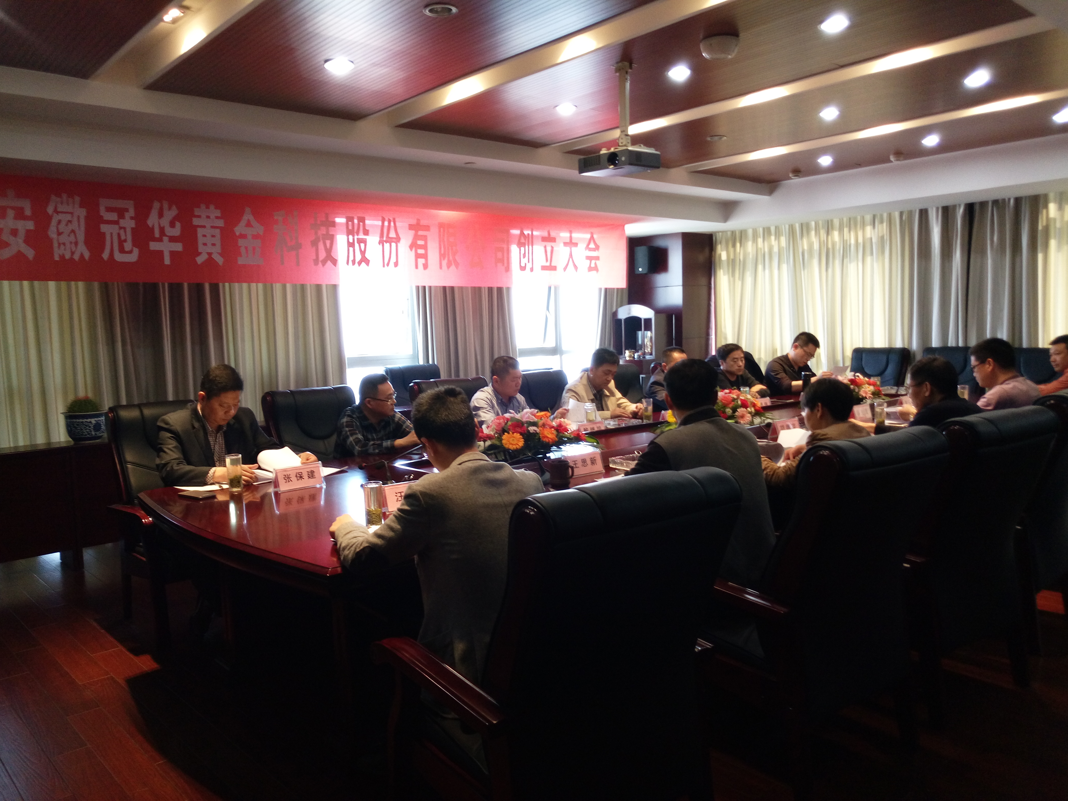 2016年4月30日,安徽冠华黄金科技股份有限公司创立大会在公司大会议室顺利召开。股份公司发起人冠华集团董事长鲍继坤,拟任公司董事会成员胡德友、刘爱萍、胡先流、张保健,监事会成员鲍恩伟、王思新、汪恒、戴红保和韦似坤,公司高管人员以及北京立信会计事务所代表和市区相关领导等出席了本次会议。